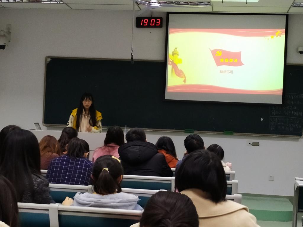 会议第二项议程:进行预备党员转正答辩。提交了转正申请的6位预备党员分别从思想,学习,工作,生活等方面汇报了在一年预备期的表现,支部成员分别进行了提问答辩。经支部讨论,投票表决。一致同意通过赵晋等6位同志的转正。