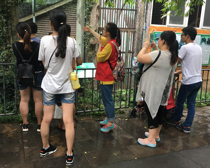 讲解组共有六名成员,分别在猩猩、大象、细尾獴三个场馆,向游客介绍动物的性格特征和生活习性,加深游客对野生动物的了解,同时宣传文明游玩理念。