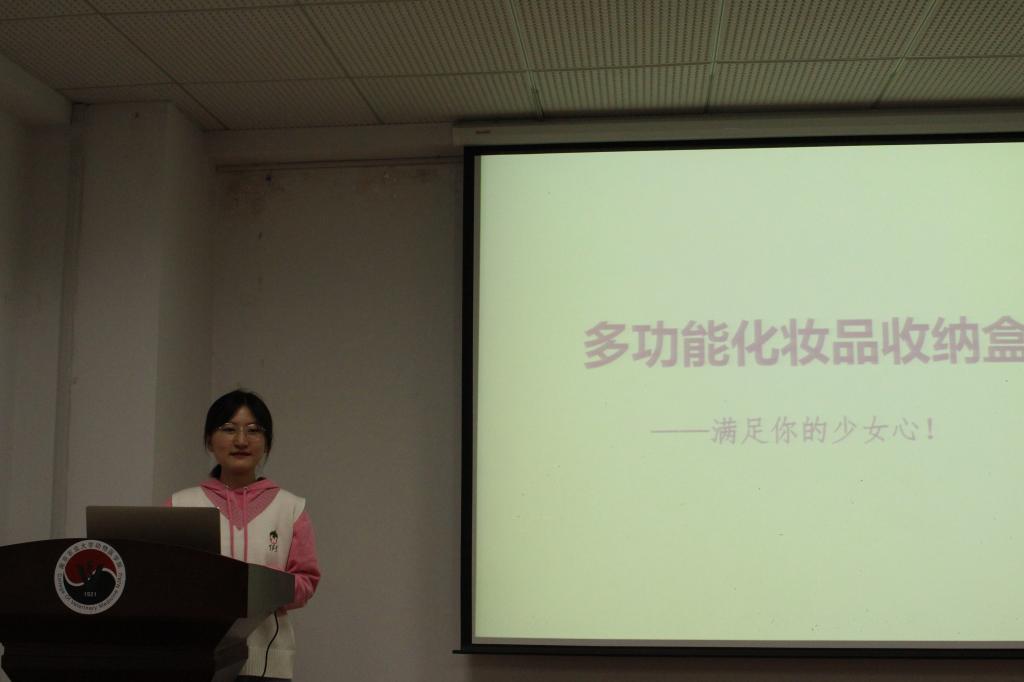 Awake队的参赛作品是多功能化妆品收纳盒,选手从几个方面介绍了她的作品的出彩之处。