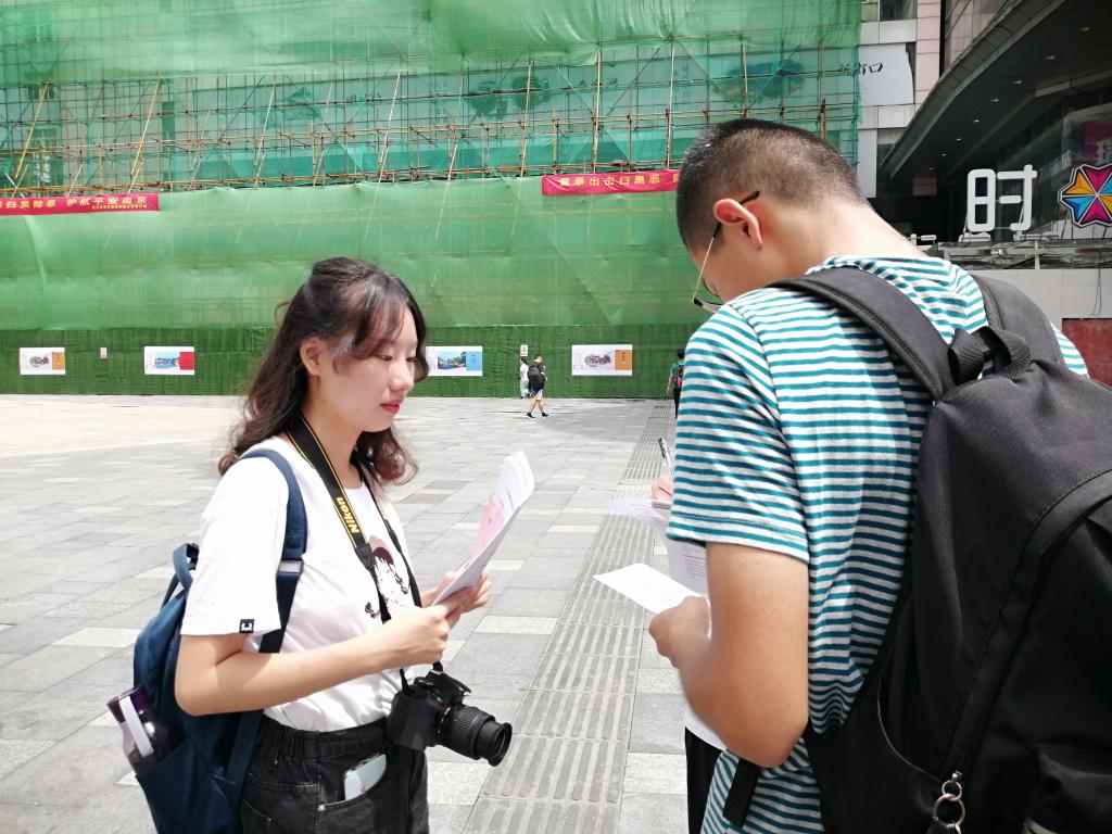 在实践的最后阶段,成员们奔走街头进行了自闭症加油视频的录制,呼吁各个阶层、年龄段的群众对自闭症患者们给予最真诚的鼓励与支持。团队也在各大媒体资源上投放剪辑好的视频,通过转发与推广,让更多的人关注到这一群体。