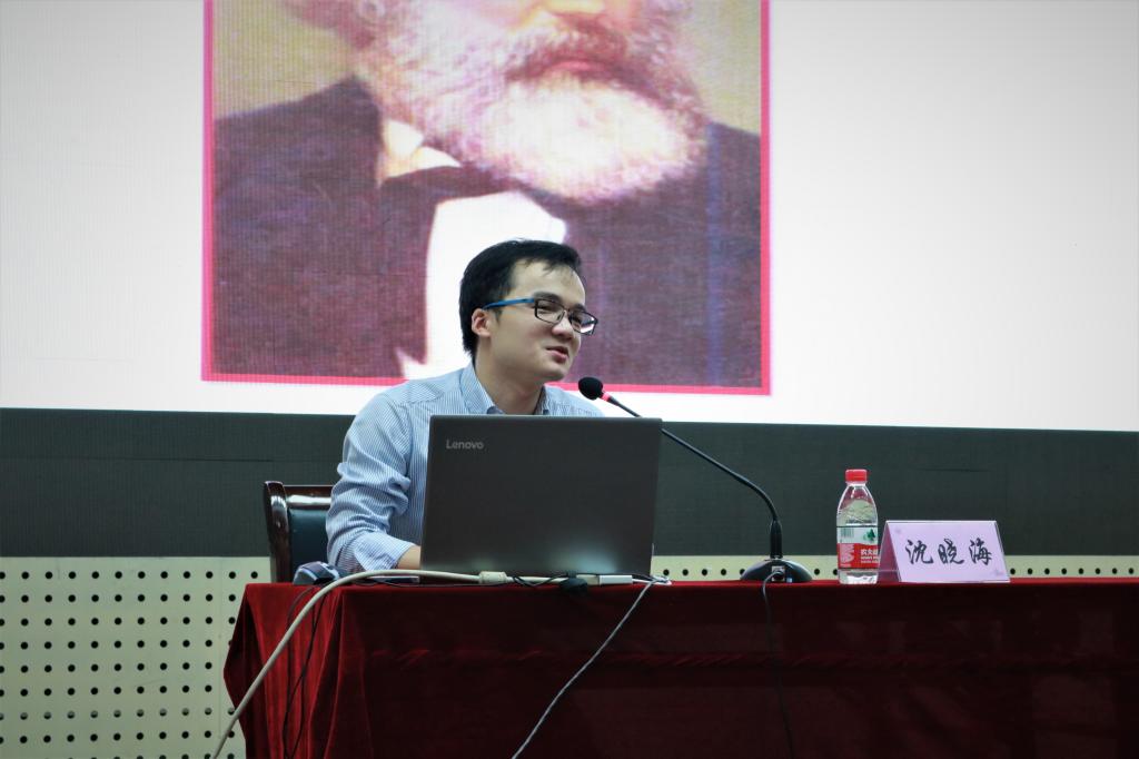 开班典礼之后进行了党课教育活动。南京师范大学地理科学院团委副书记沈晓海老师,进行了主题为《一起回到马克思》的报告。本次报告从以下四个问题展开:“马克思是谁”、“为什么是马克思主义”、“什么是马克思主义”、“怎么评价马克思和他的主义”。从了解以马克思为代表的国际无产阶级战士为什么要开展国际工人运动这一角度,解答“不忘初心、牢记使命”主题教育中的初心是什么。沈晓海指出,马克思之所以伟大是因为他的许多观点和思想被反复证实是正确的,是改造世界的有力武器。
