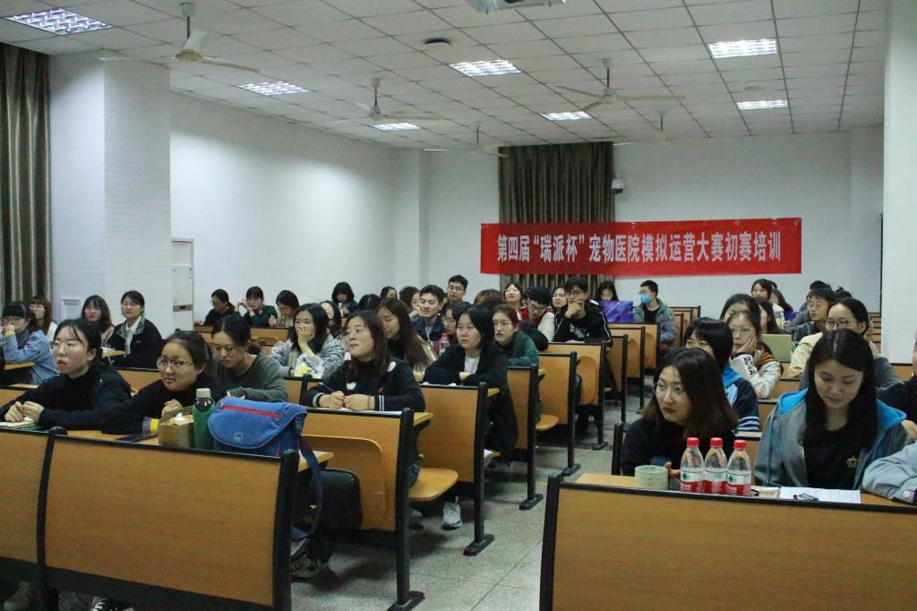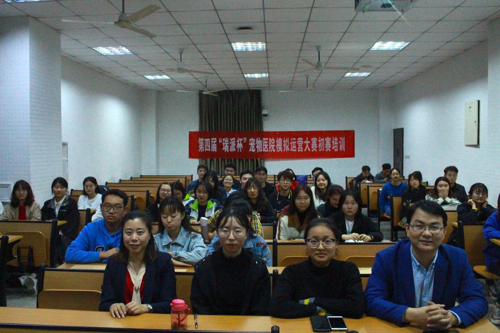 11月6日,德赢Vwin官方区域合作伙伴与江苏瑞派东华宠物医院管理有限公司联合举办的德赢Vwin官方区域合作伙伴第四届“瑞派杯”宠物医院模拟运营大赛初赛培训工作在教学楼B125隆重举行。本次参赛队伍共有20支,合计到场人数82人次。