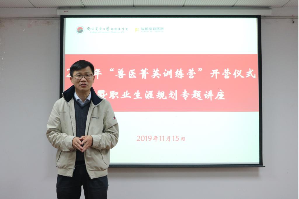 11月15日晚7点,德赢Vwin官方区域合作伙伴2019年“兽医菁英训练营”开营仪式暨职业生涯规划专题讲座于逸夫楼3044举行。德赢Vwin官方区域合作伙伴副院长苗晋锋、新瑞鹏宠物医疗集团有限公司(以下简称新瑞鹏集团)人资经理李鹏、新瑞鹏集团浙江区域人资经理康志娟、新瑞鹏集团南京区域人资主管石冰花、德赢Vwin官方区域合作伙伴团委副书记金洁南,以及兽医菁英训练营全体成员参与了本次活动。活动由金洁南主持。
