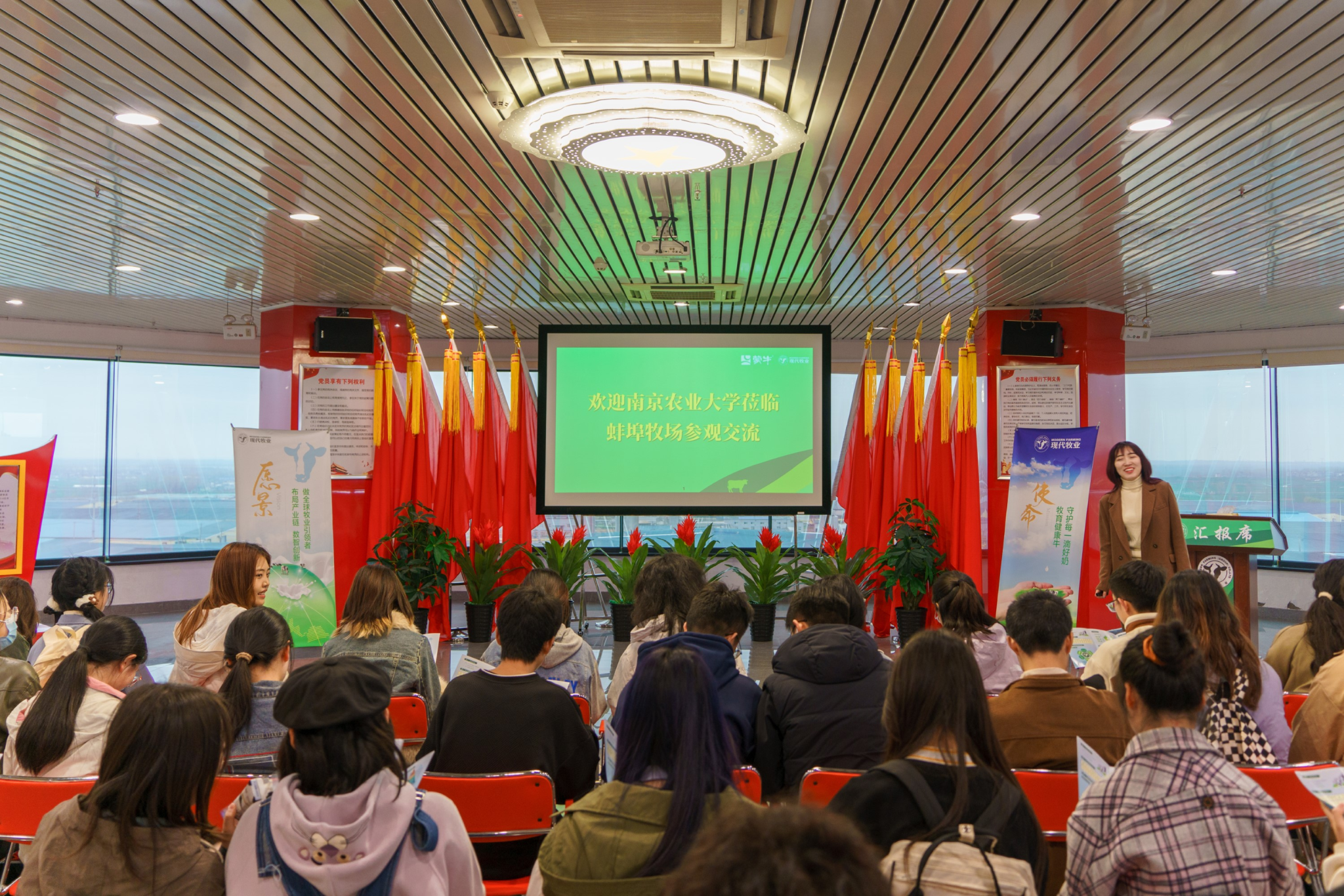 座谈交流会环节中,郝婧妤围绕着集团发展概况、企业文化、人才培养、福利待遇等方面展开介绍,其中对公司人才培养模式进行了较细致的阐述。同时,郝婧妤代表现代牧业集团,欢迎更多的南农学子加入现代牧业的大家庭,将所学的知识与技能,更好地投入实践,助力中国奶业做大做强。