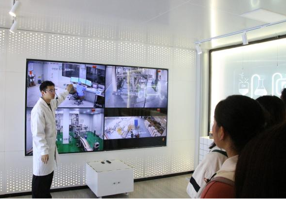 参观团分为两队,一队由人力资源部负责人李伟良结合PPT向同学们介绍宠物用粮的市场数据以及公司对市场需求量变化的应对措施,另一队由食品研发主任富超带领,为同学们讲解生泰尔企业的发展史以及宠物用粮研发的相关知识。两队成员汇集后,设备部副经理罗大建带领同学了解厂区实验室的主要职责和厂区的未来规划。