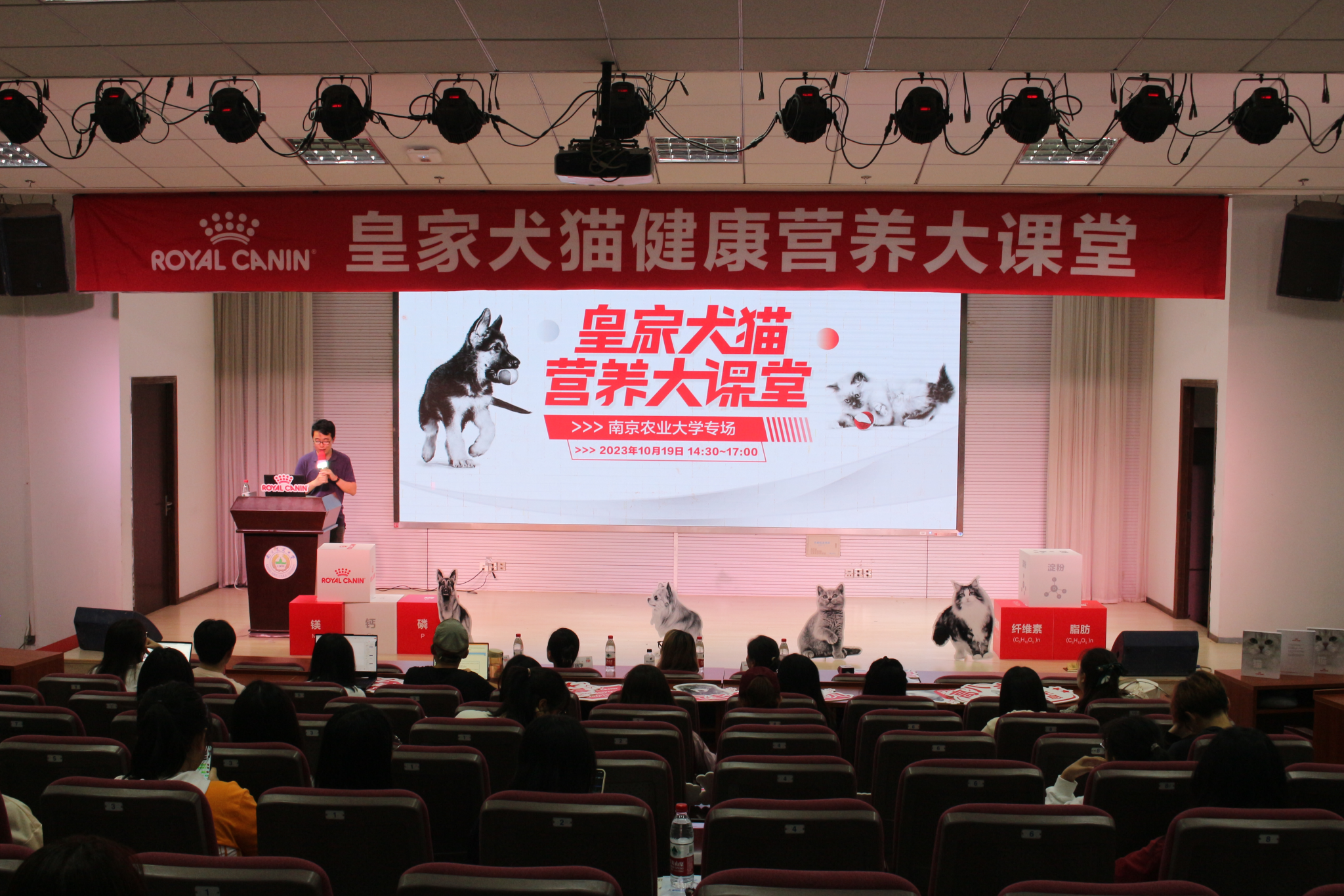 10月19日下午14:30,2023年皇家犬猫营养大课堂南农行在教四楼报告厅举行。到场嘉宾有皇家宠物食品中国区代表、德赢Vwin官方区域合作伙伴临床兽医系陈凯文副教授和辅导员李欣欣。皇家宠物食品中国区科技交流部王芳与皇家宠物食品中国区电商渠道高级经理徐斯旸共同主讲。皇家宠物食品中国区代表与德赢Vwin官方区域合作伙伴、动物科技学院等学生六十余人到场参与。