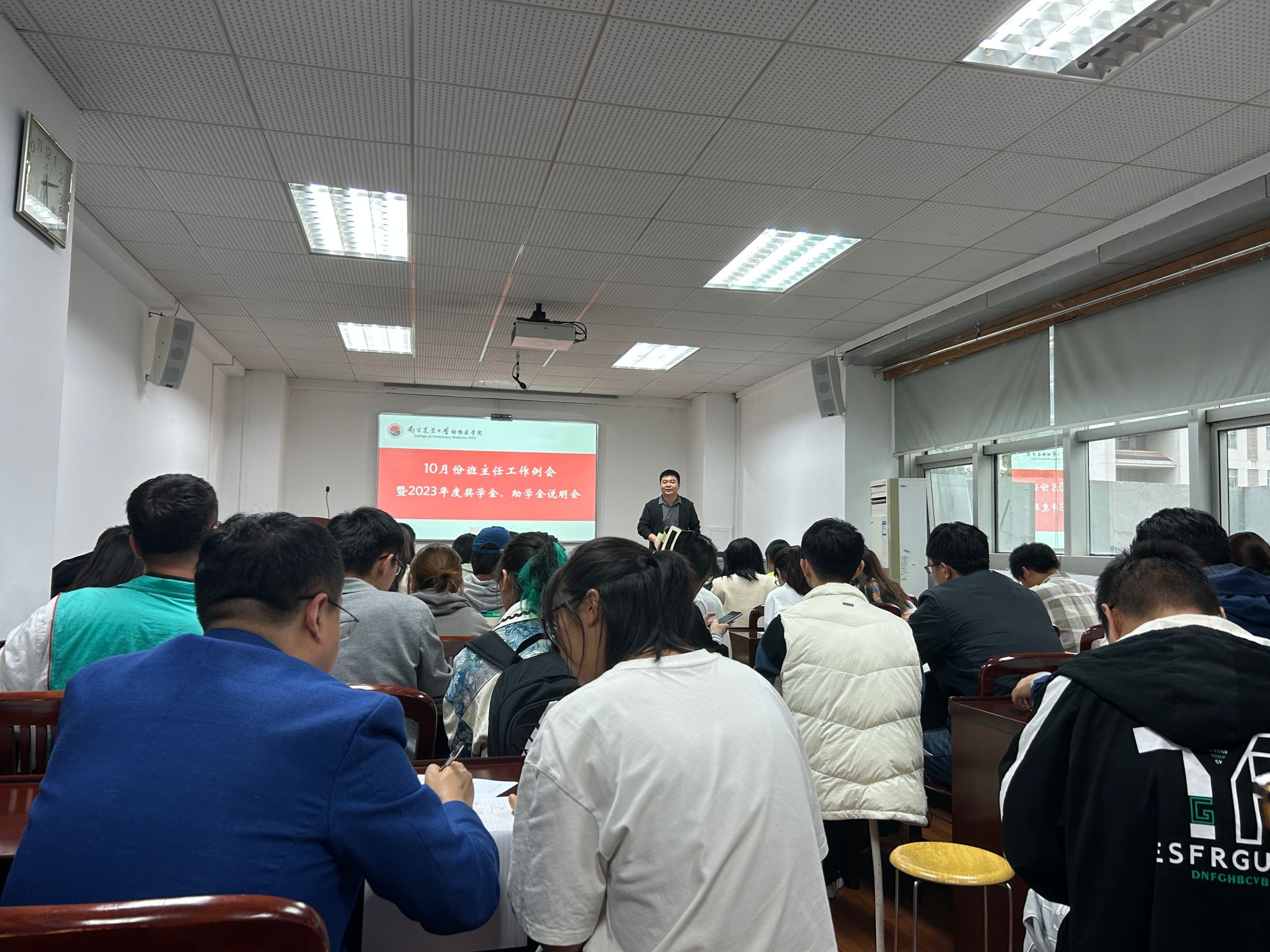 10月8日下午,德赢Vwin官方区域合作伙伴10月份本科生班主任工作例会暨2023年度奖学金、助学金说明会在逸夫楼3044召开。学院35个班级班主任和班委到场参与,院党委副书记李云锋,辅导员徐刚、李欣欣参会。