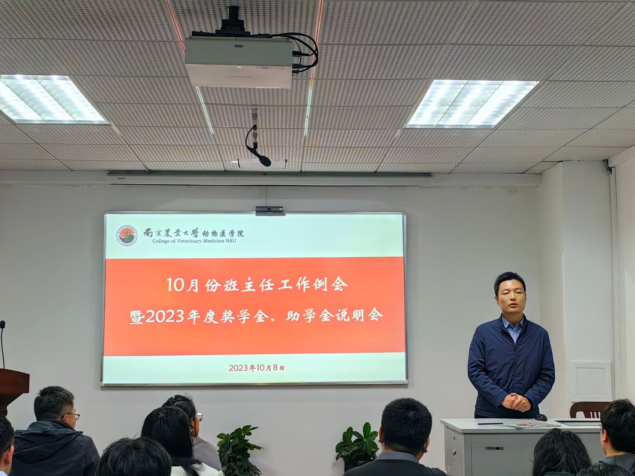 会议伊始,李云锋表达了学院对班主任们辛勤工作的感谢,并对本月班主任工作内容进行阐述,对2023年度的奖学金和助学金的评选工作作出简要说明,并强调其重要性。