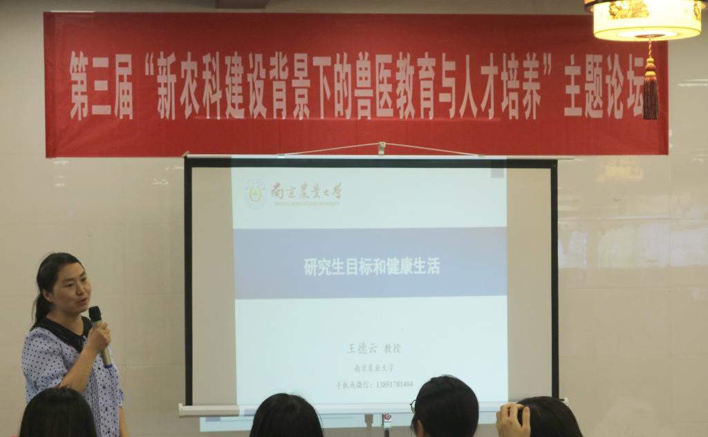 王德云教授围绕“研究生目标和健康生活”,分享了优秀校友的求学故事,和我国兽药的行业现状,从中医的角度,引导同学们要关注自身健康,好的身体才是学习和工作的根本。