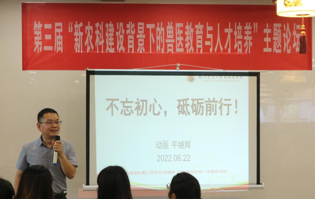 平继辉教授从世界科学发展和国家有关规定内容出发,告诉同学们“兽医领域大有可为!”,希望同学们可以心怀感恩,心存敬畏,不忘初心,砥砺前行。