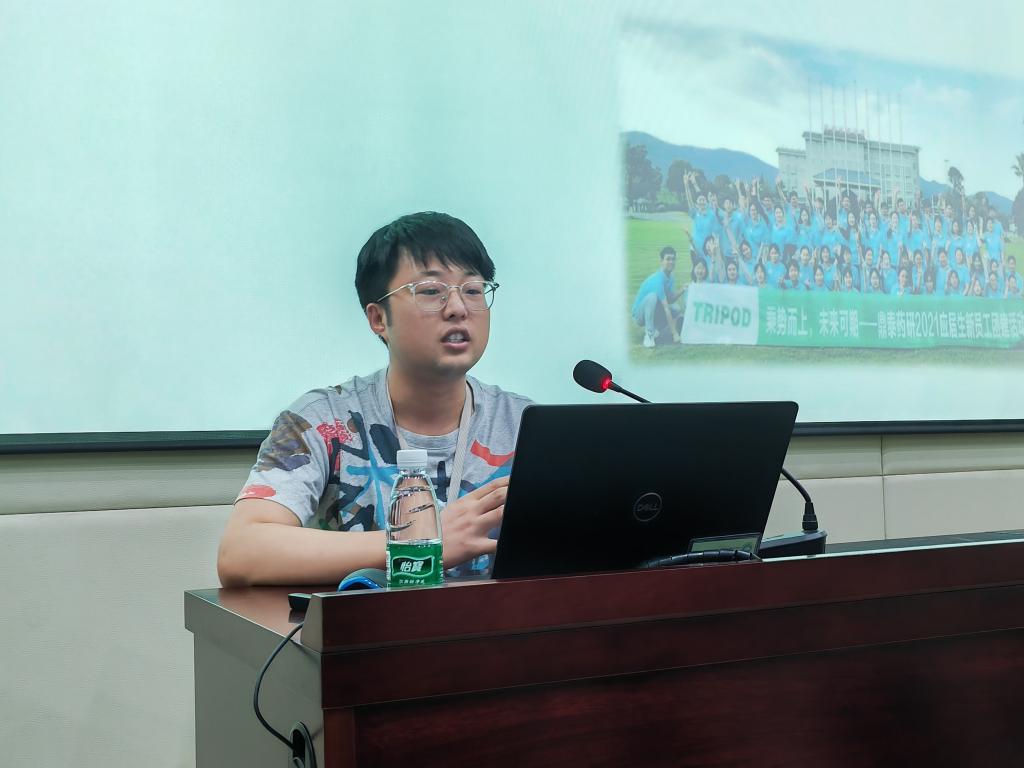 在校友分享环节中,2020届本科毕业生杨晨、2021届硕士毕业生季春雷学长从个人求职、岗位职责、工作感悟、鼎泰生活等方面进行了分享。