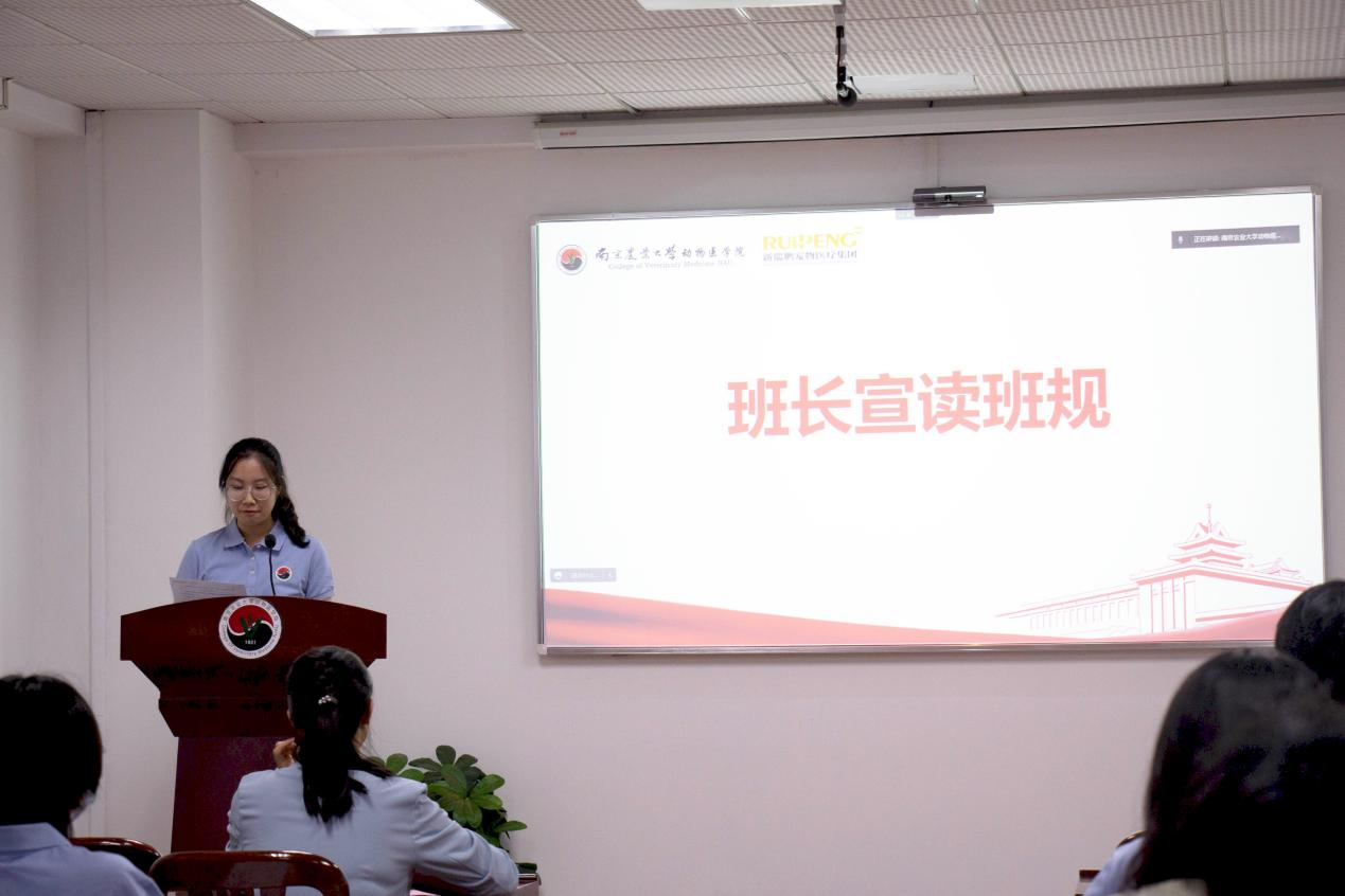 随后,由新瑞鹏班班长朱子萌宣读班级管理规定。
