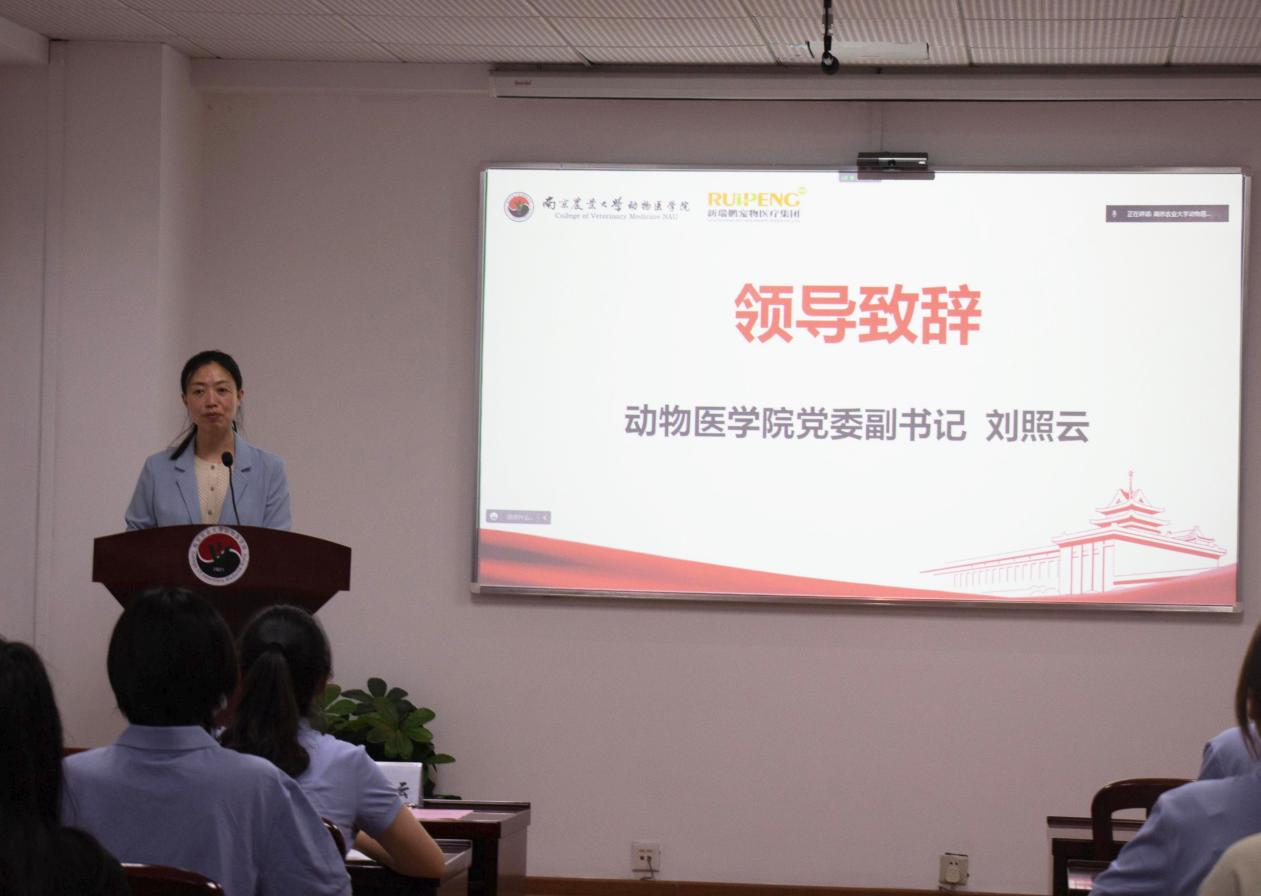 会议开始,刘照云致欢迎辞,热烈欢迎新瑞鹏集团前来学习交流。刘照云副书记表示自开学以来,虽然因为疫情大家都被封控在学校中,生活和工作都收到了巨大影响,但大家学习的热情却丝毫不减。而为了有效促进宠物医疗及美容等行业人才的健康发展,促进行业、企业与学校的合作,南农动医院联合新瑞鹏宠物医疗集团在这里举行“德赢Vwin官方区域合作伙伴第五届瑞鹏班开班仪式”。因为疫情防控要求,本届瑞鹏班采取线上线下的方式进行。
