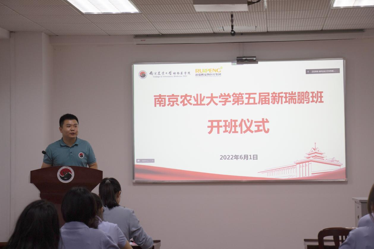 接着,张伟东讲话,对第五届“新瑞鹏班”同学的到来表示欢迎,并讲述了新瑞鹏多年来的创业经历和现在新瑞鹏的雄厚实力。张伟东说在南农动医院举办新瑞鹏班有得天独厚的优势,学生们能在德赢Vwin官方区域合作伙伴打下深厚的理论基础,在新瑞鹏集团所开的宠物医院丰富中自己的临床实践经历。也表示期待学生们能巩固自己的知识,尽快成长,为宠物医疗行业做出更多贡献。