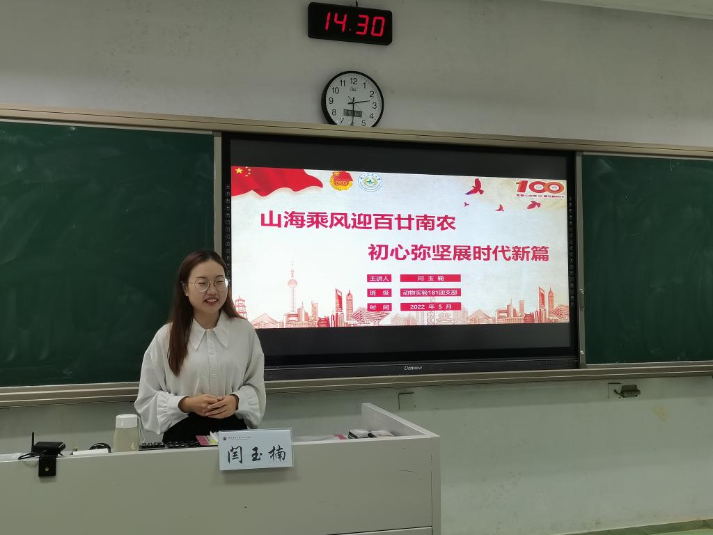 最后,闫玉楠带领同学们回顾南农百廿以来的光辉岁月,了解南农先辈在国家建设、民族复兴、学校发展中做出的卓越贡献,勉励同学们牢记诚、朴、勤、仁的校训,求真学问、练真本领,在实干中践行新农人使命,在实干中为民族复兴贡献力量。