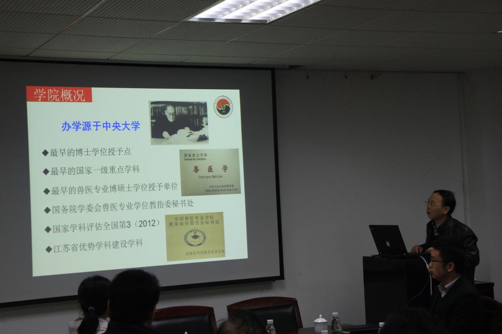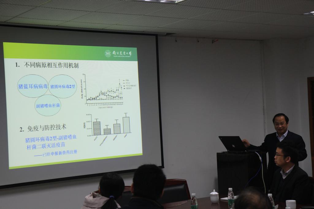 在随后召开的教授座谈会上,院长周继勇教授首先就德赢官网的发展历史、学科状况、科研基地平台、“十二五”期间的科研情况进行了汇报。随后,基础兽医学系主任赵茹茜教授、预防兽医学系主任姜平教授、临床兽医学系主任黄克和教授分别汇报了各系的师资队伍、“十二五”科研成果及其研究特色。听完汇报后,两位领导对德赢官网取得的科研成绩给予了充分肯定,并就德赢官网的科研工作给予了指导,同时介绍了国家科技体制改革的情况、政策、动态以及重点研发计划情况,希望德赢官网整合优势资源,积极申报相关重点研发专项项目。