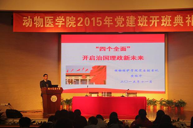 11月15日下午两点,德赢Vwin官方区域合作伙伴2015年党建班开班典礼在大学生活动中心举办。植物保护学院党委副书记黄绍华、动医院党委副书记熊富强、政治学院马克思主义教研室主任朱娅出席开班典礼。全院本科生、研究生共200余名学员参加了典礼,开班典礼由辅导员郭荔主持。