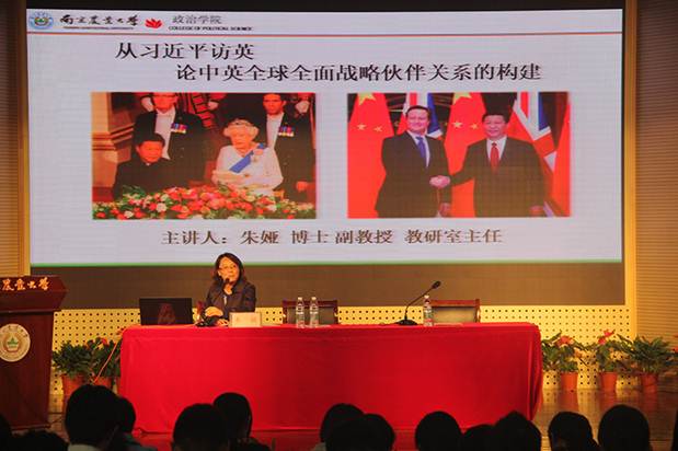 典礼结束后,朱娅围绕“习近平访英论中英全球全面战略伙伴关系的构建”为题、黄绍华围绕“‘四个全面’开启治国理政新未来”为题为全体党建班学员做了主题报告。