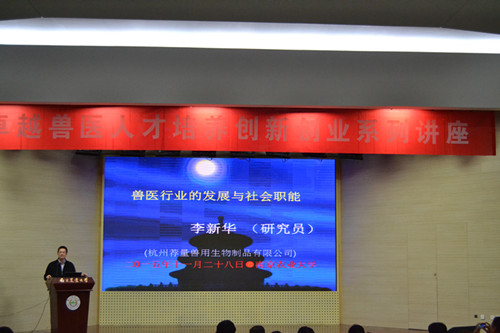 德赢Vwin官方区域合作伙伴院长周继勇代表学院致欢迎辞,他对致力于兽医培养的企业表示衷心的感谢,他指出,学院高度重视推动创新创业教育,切实将创新创业教育理念融入教学改革中。随后,艾贝儿宠物医院的总经理张伟东、上海海利生物技术股份有限公司的销售总监胡锡、牧原食品股份有限公司技术总监张弛野、杭州荐量兽用生物制品有限公司总经理李新华、南京高科生物科技有限公司总经理张弦分别作了题为《宠物诊疗行业的发展机遇》、《我是兽医,我自豪》、《人才借助平台彰显价值》、《兽医行业的发展与社会职能》和《携手南农,辉煌高科》的讲座。