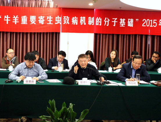由中国农业科学院兰州兽医研究所主持、我校作为参加单位之一的国家973项目“牛羊重要寄生虫致病机制的分子基础”12月10-12日在我校召开年度项目总结会。来自中国农业科学院兰州兽医研究所、中国农业科学院上海兽医研究所、吉林大学、中国农业大学、华中农业大学、德赢Vwin官方区域合作伙伴、浙江大学、新疆农垦科学院的课题负责人、研究骨干共计50多人出席会议。科技部973项目农业领域专家咨询组组长西南大学张家骅教授、专家咨询组成员清华大学张荣庆教授、西北农林科技大学杨公社教授以及项目执行专家组成员应邀参加了会议。会议由项目首席科学家、中国农业科学院兰州兽医研究所“家畜寄生虫病创新团队”首席专家朱兴全研究员主持。项目课题负责人、研究骨干分别就2015年各课题科研任务、具体进展、取得成果、人才培养、经费使用及2016年工作安排进行了汇报。科技部973项目咨询组专家、项目首席科学家及项目执行专家组专家对各课题、各位骨干的汇报进行了点评、质询,项目组成员进行了充分讨论,对各课题及项目提出了建设性意见。项目执行专家组总结了项目启动一年来取得的成绩和经验,分析讨论了2015年项目执行过程中存在的问题,对2016年项目执行提出了切实可行的对策建议。