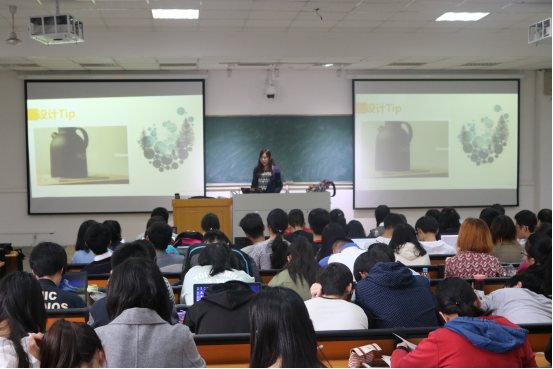 第二节课,陈洁讲解了Photoshop CS6基础知识,主要分Photoshop简介及应用领域、界面构成 、基本概念 和 简单基本操作 这四个方面。在讲解PS的使用过程中,她说到:要想做好一张图,就需要留意生活中的作品,培养对时尚的敏锐度,一件优秀的作品不是技巧的堆砌。