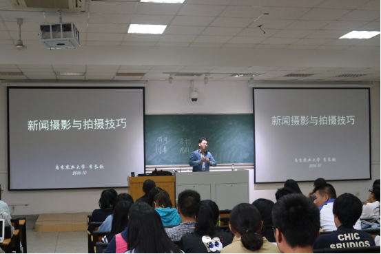 第一节课,许天颖以“校园新闻策划与采写”为主题,为大家讲解了什么是新闻,如何策划新闻、如何采出好新闻和如何写出好新闻。她提到,要想写好新闻,“脚到现场”是最实用,也是最有用的方法。