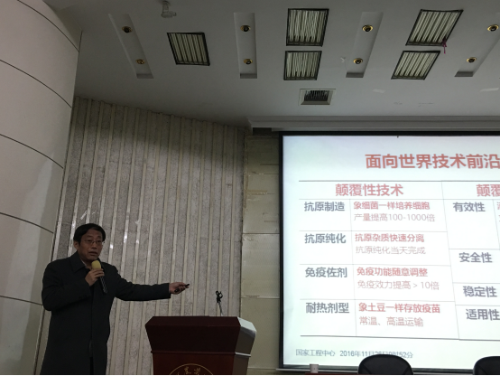 其次,候继波以《动物疫苗工程》为题,向大家讲解最新的动物疫苗发展动态,内容专业且新潮,使学生大开眼界。