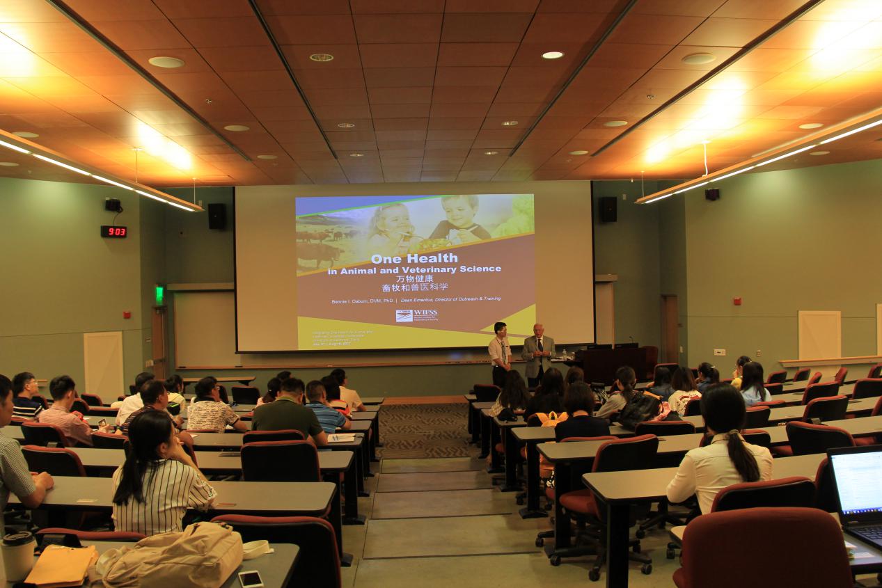 活动期间,学员们对“One Health”的概念进行深入的理论学习和实践。UC Davis兽医学院名誉院长Osburn及30多位流行病学、食品安全、动物临床等方面的教授走上讲台就流行病学、大数据、毒理学、食品安全、兽医产业经济等方面情况结合美国生产实际运用对“One Health”进行讲解。期间,还围绕加州农业经济参观了奶牛养殖、蜂蜜生产、宠物诊疗等产业基地,让学员对整个加州农业及未来农业发展方向有了细致深入的了解。
