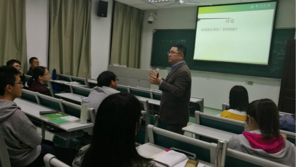 周斌老师在研讨会初向同学们介绍了自己,并且介绍了兽医这个职业的归属,打破了同学们一直以来认为兽医是乡村医生的定势思维。在之后的讨论中,周斌老师向同学们介绍了猪瘟等一些猪的传染病对人类的影响,以及临床上的治疗方法。互动中,周斌老师向同学提出为什么要做兽医的疑问,同学们各抒己见。整场会议进行地有条不紊,同学们和老师互动良好。