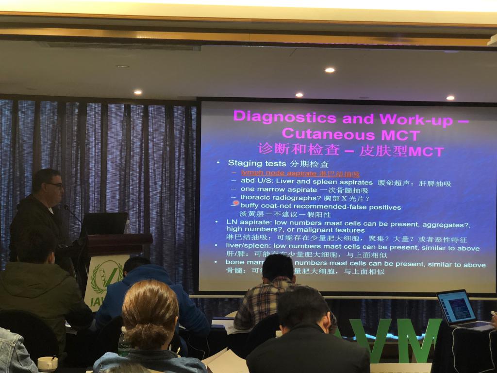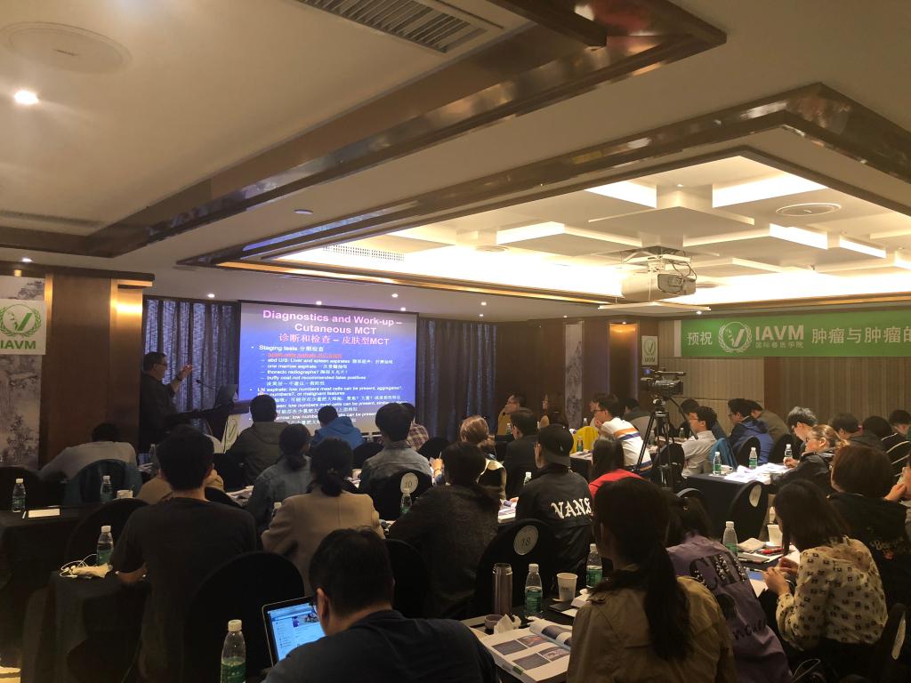 此次课程为期4天,包含肿瘤的生物及病理学、细胞学诊断、化疗药物特点及应用原则等肿瘤学基础知识,并重点讲解小动物临床常见的肿瘤性疾病如犬、猫淋巴瘤、肥大细胞瘤、乳腺肿瘤、血管肉瘤的诊断及治疗方式,与患有肿瘤疾病的动物的主人沟通技巧等内容。