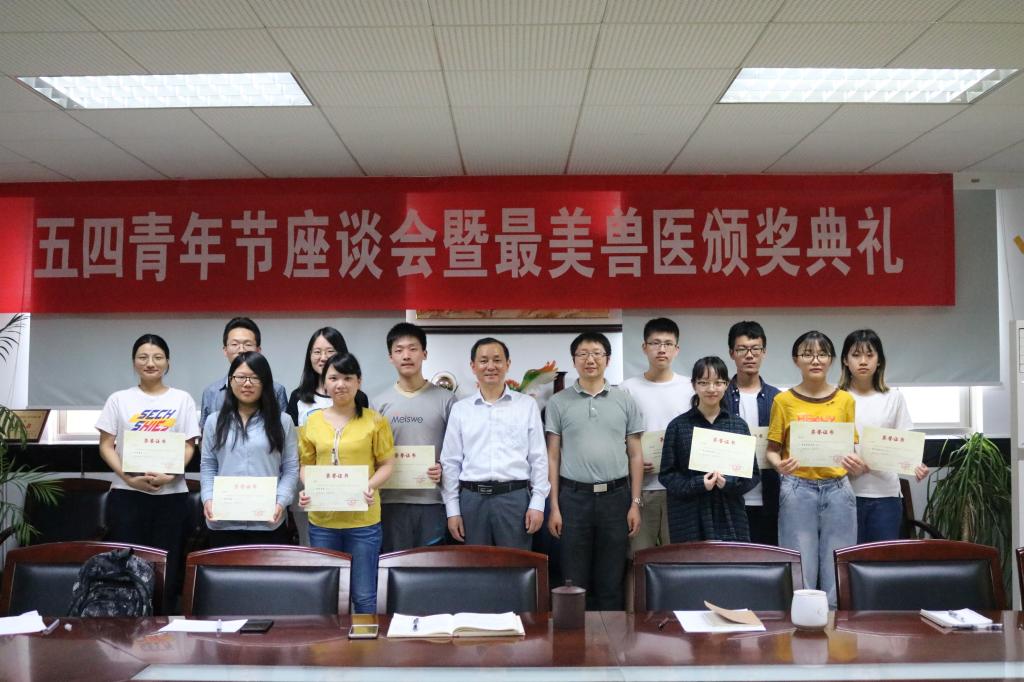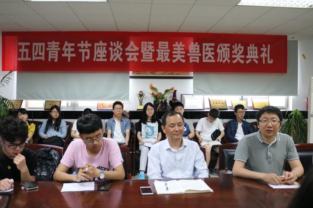 2018年5月2日下午14:00,德赢官网在逸夫楼3036组织召开五四青年节座谈会暨最美兽医颁奖典礼。学院党委书记范红结、党委副书记熊富强、团委副书记金洁南及各团支部青年学生代表参加了本次座谈。会议由党委副书记熊富强主持。