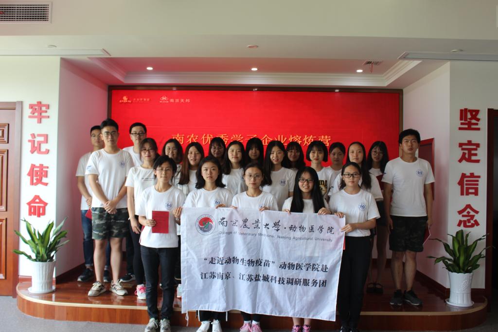 7月11日-17日,德赢官网团委组建的“走近动物生物疫苗”科技调研服务团,在辅导员徐刚、李欣欣两位老师的带领下,来到江苏盐城汉世伟食品有限公司、南京天邦生物科技有限公司参观学习。