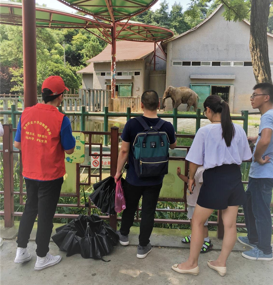 讲解组共有十三名成员,分别在猩猩、大象、细尾獴、长颈鹿四个场馆,向游客介绍动物的性格特征和生活习性,加深游客对野生动物的了解,同时宣传文明游玩理念。