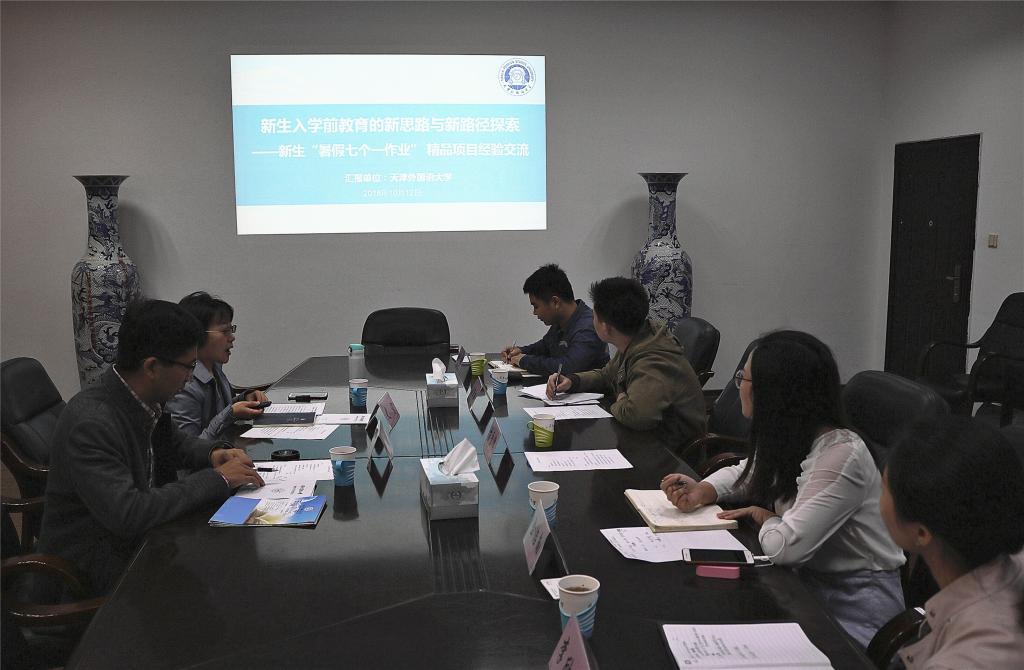 2018年10月12日,天津外国语大学学生处教育宣传科副科长刘志,涉外法政学院的团委书记史宁,就新生入学教育暨“胶囊十课”教育模式我校交流分享。