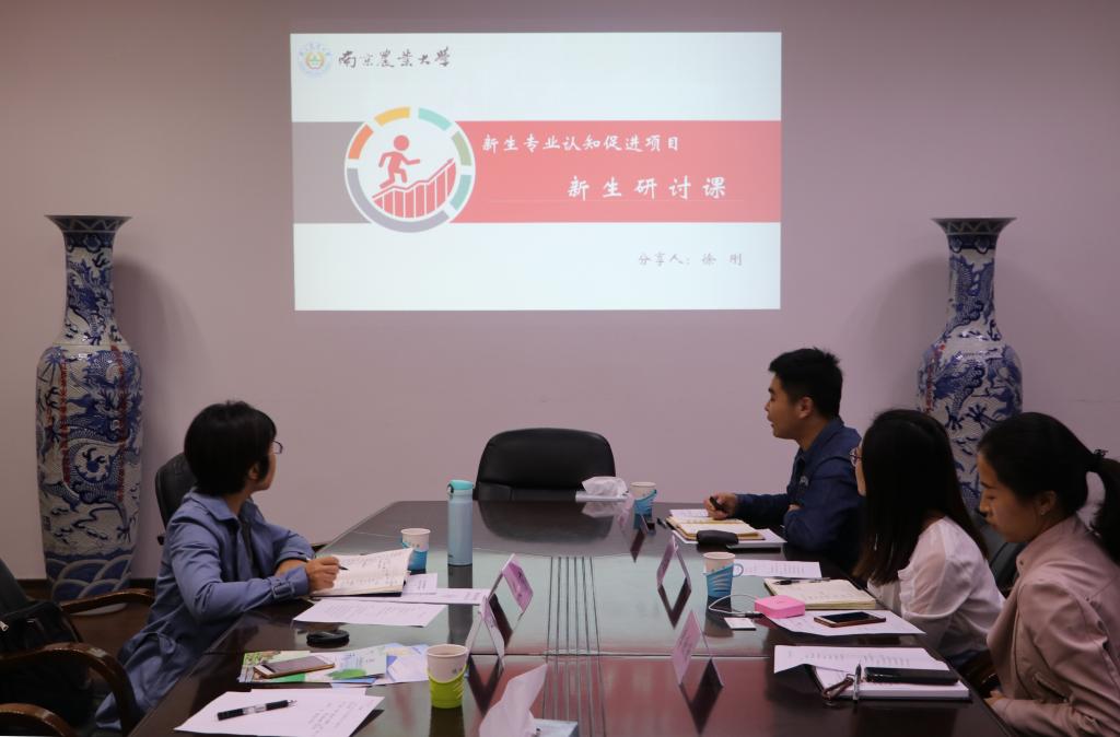 本科生辅导员徐刚分享了新生专业认知促进项目——“新生研讨课”。新生研讨课重点在于对学生的专业认知教育,以四个“1”为核心,即1个小时,在1个精致的小教室,1位授课老师,和1群(15-20名)学生,共同就1个专业话题,开展讨论交流,授课人员包括专业老师,优秀校友,知名企业HR等,旨在加强学生的专业了解和专业认同感,尽早的帮助学生寻找和确立自己的专业兴趣。