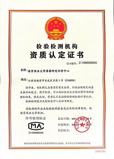 近日,德赢Vwin官方区域合作伙伴兽药研究评价中心正式通过CMA认证(即检验检测机构资质认定证书)。该认证的通过标志着德赢Vwin官方区域合作伙伴兽药研究评价中心全面建成并运营!
