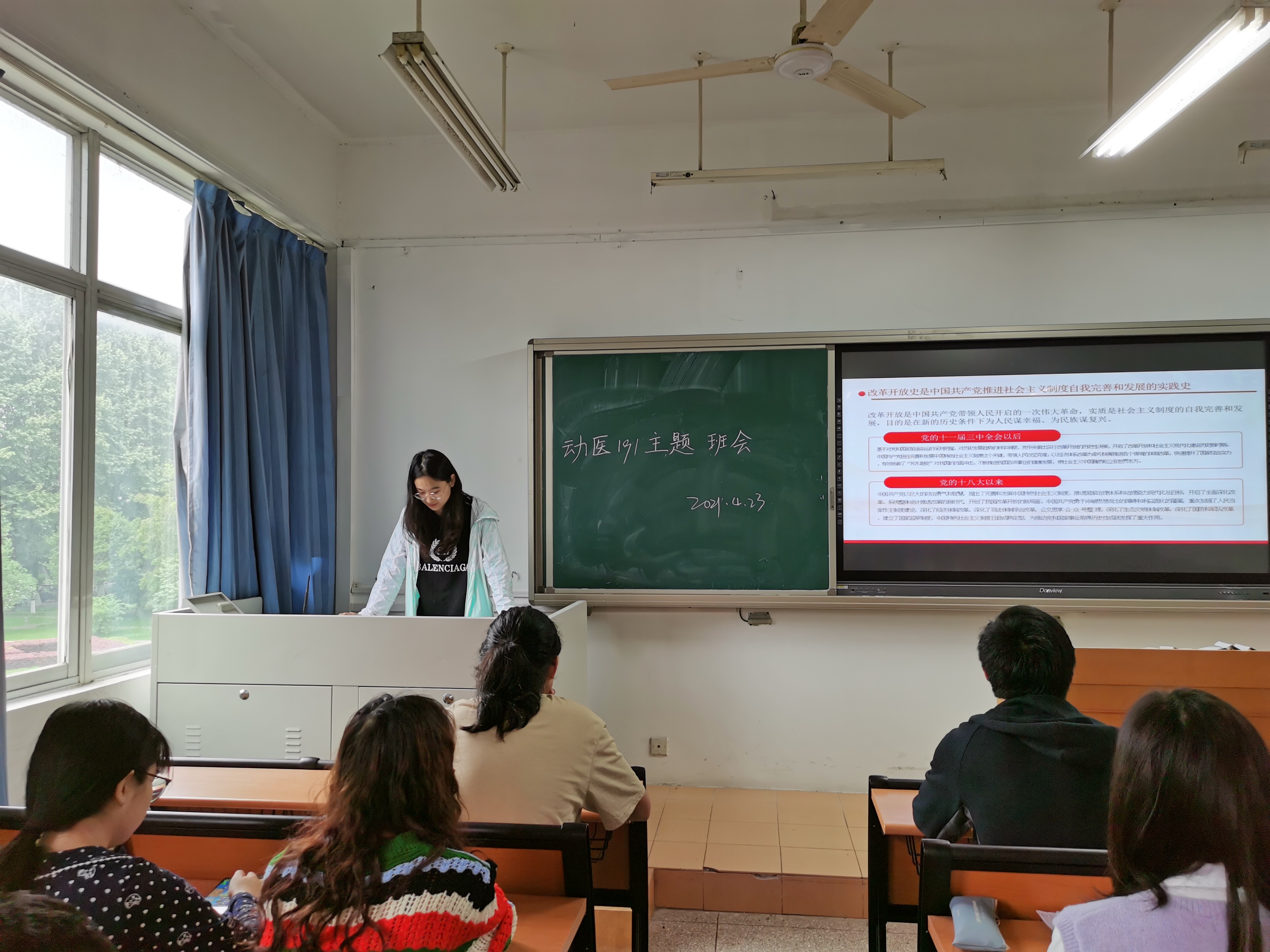 动医191团支部举行了“四史学习教育,忆初心,担使命”主题团日活动。通过PPT讲解“四史”,让同学们加深对党史、新中国史、改革开放史、社会主义发展史的记忆与理解,同学们从“四史”教育中,结合有关人物,深度思考,发现理想信念是共产党人的精神动力和理想源泉,加深跟随党的信念。