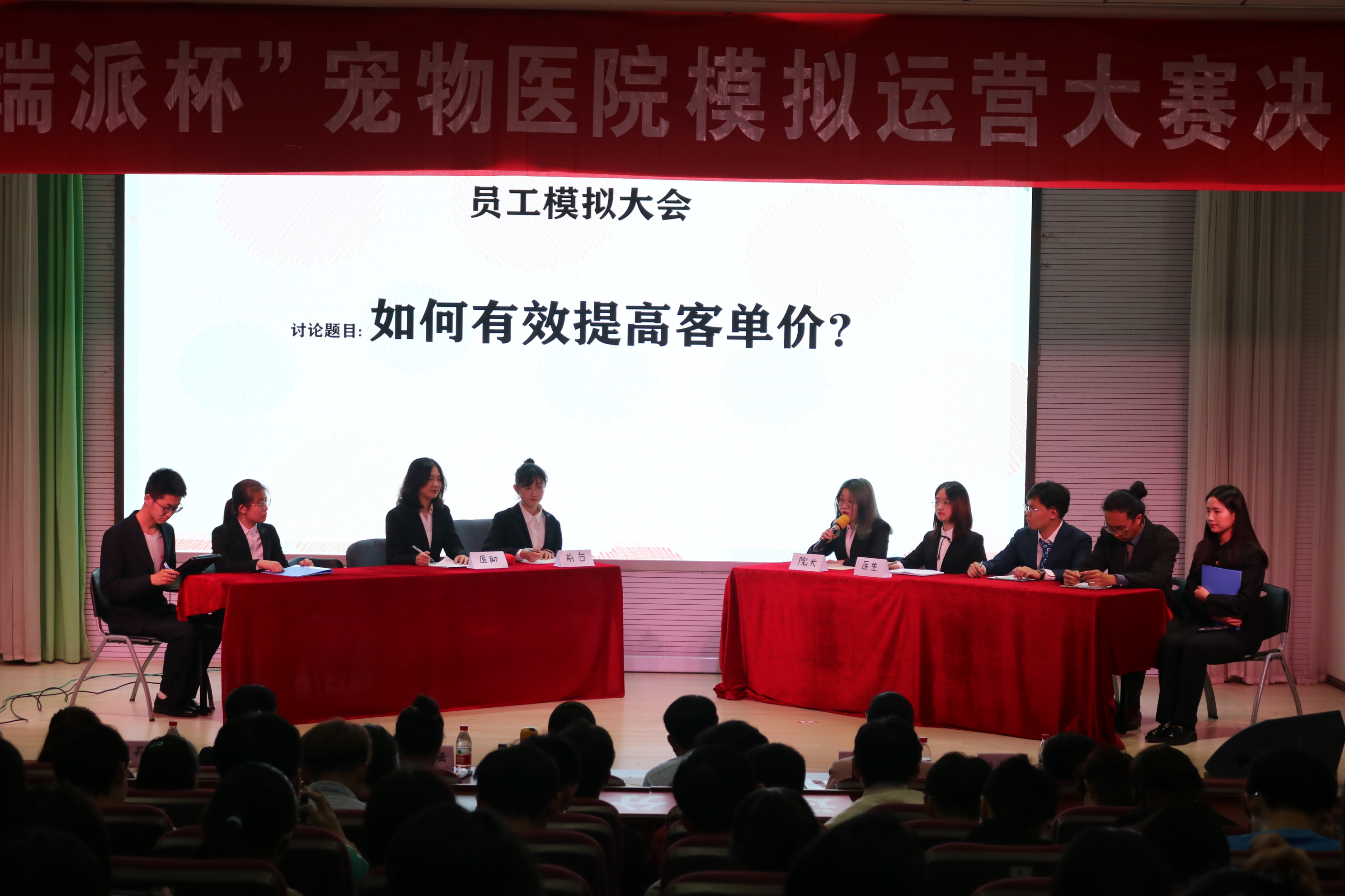 5月7日晚,德赢Vwin官方区域合作伙伴主办的第五届“瑞派杯”宠物医院模拟运营大赛决赛在教四楼报告厅成功举行。出席本次比赛的评委有:瑞派宠物医院华东管理公司副总经理马媛媛女士、运营总监裴志新先生,德赢Vwin官方区域合作伙伴党委副书记刘照云老师,动物医院院长赵艳兵老师,学生工作处教育管理科黄芳老师,就业指导中心周莉莉老师,团委宣传教育部姚敏磊老师。