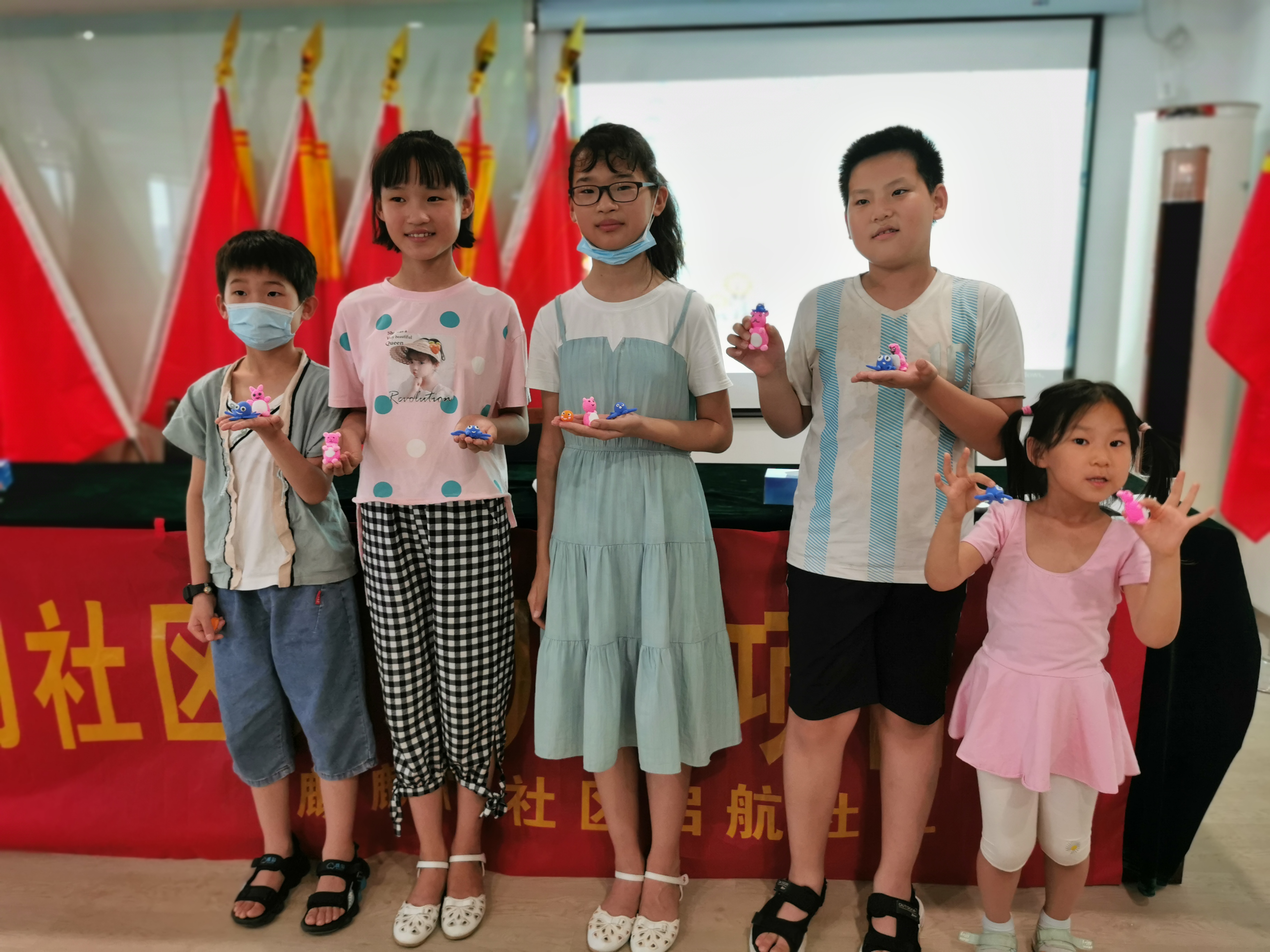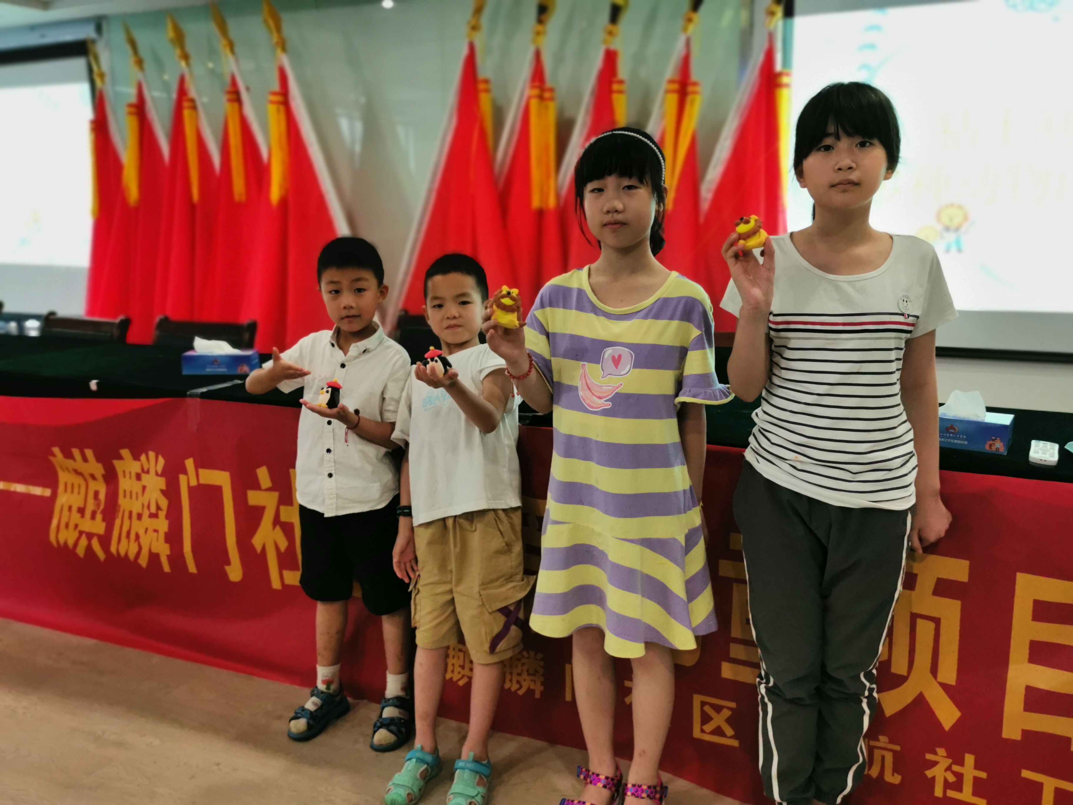 下午2:30 ,周城茹同学从“动物形态”、“生活习性”、“狮子冷知识”和“狮子文化”四个方面给小朋友们科普了有关狮子的知识 。讲解结束后由志愿者给小朋友们分组,带领小朋友们用粘土制作“狮子”、“企鹅”、“兔子”、“考拉”等多种动物,做好之后每个组上台进行展示。