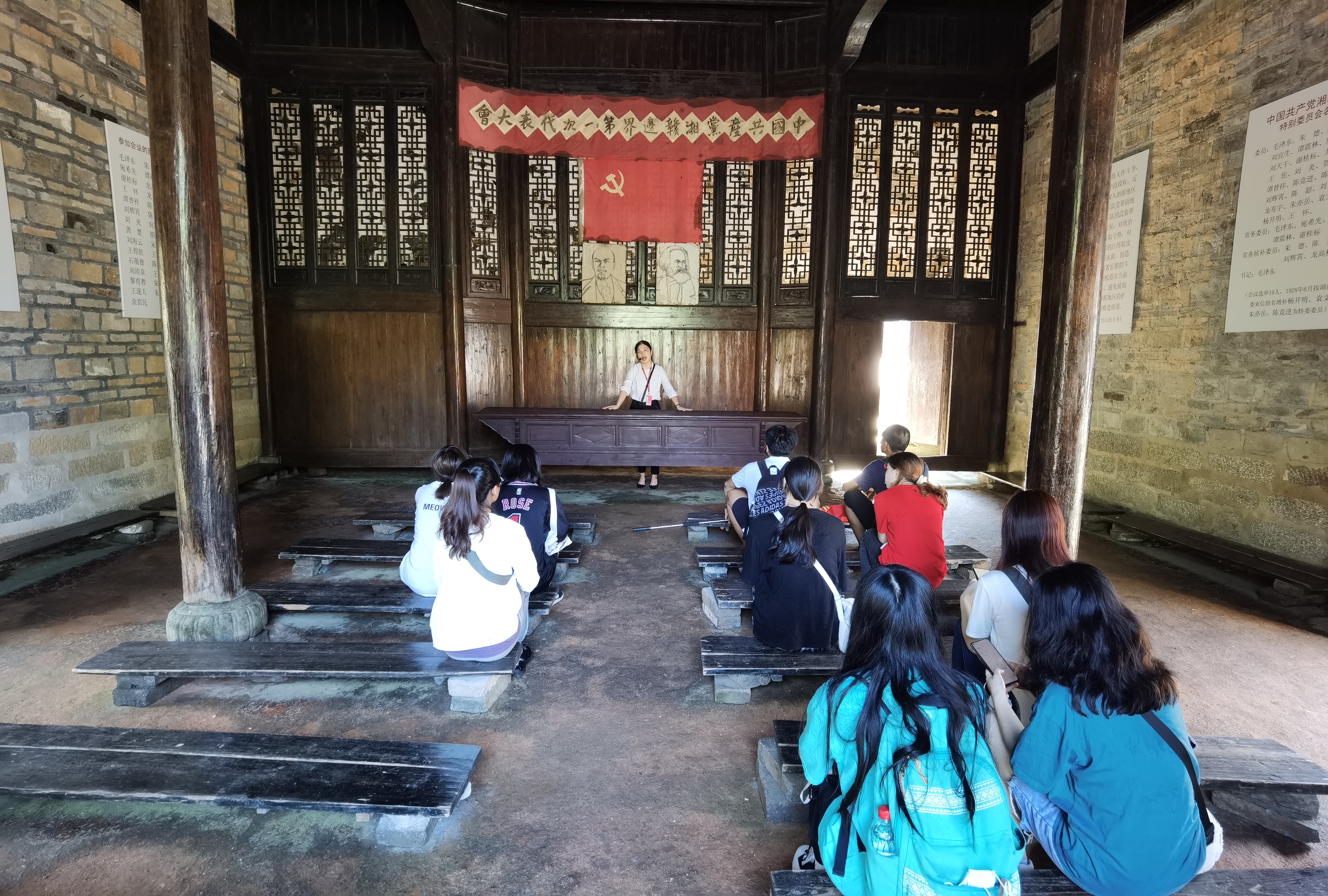 7月14日,同学们来到了茅坪八角楼、龙江书院、黄洋界哨口等著名井冈山红色景点。在讲解员老师的介绍下,了解到在八角楼的清油灯下,毛泽东同志是如何写下《中国的红色政权为什么能够存在?》、《井冈山的斗争》两篇光辉著作,重温了朱毛成功会师时的激动人心,聆听了黄洋界哨口一颗炮弹落在敌军指挥部的历史故事,诵读了毛泽东同志的《西江月•井冈山》,亲身感受了当年革命者的伟大历史故事。