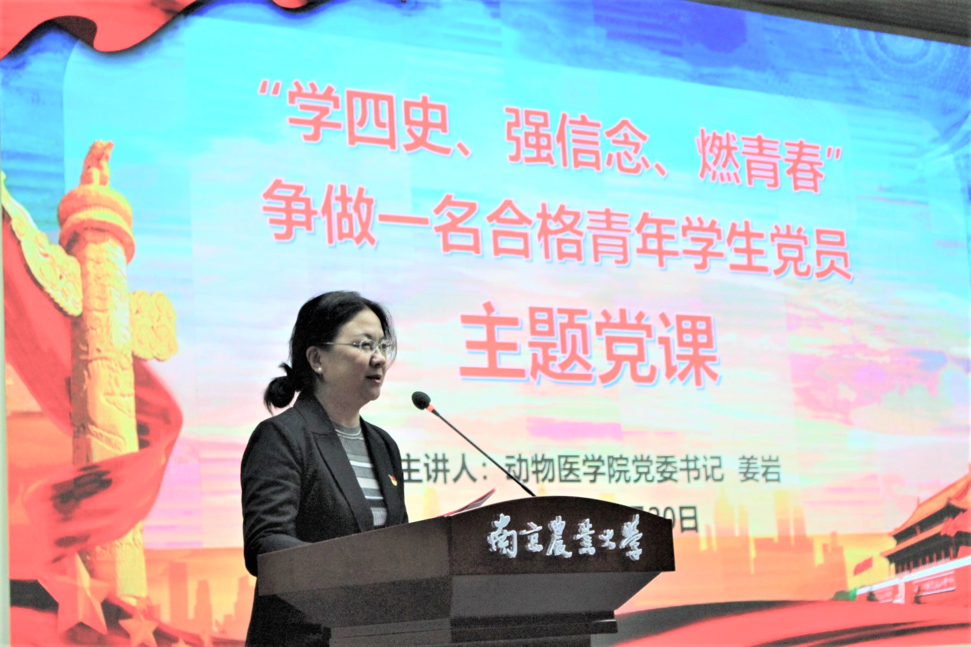 接着优秀党员代表李姿萱发言,回忆了自己过去四年的经历,并阐述了自己对于党员身份的理解,通过自身四年的大学经历具体刻画了共产党员的要求和准则。王欣瑶作为2021级本科生新生代表发言,用生动的语言描绘了中国共产党的峥嵘史册,对入党动机有更深层次的思索。
