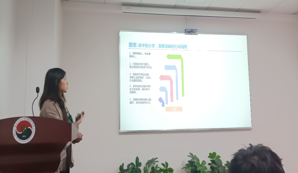 首先,张蒙指出了同学们在大学生活中可能会遇到的问题,并给出了应对方法,提出了“五要,五不要”。从高中到大学,角色和环境的改变必然会给同学们的生活带来变化,但是需要铭记考取大学的初衷,加深对自我的认知,积极探索兴趣特长,对自己的大学时光有清晰的行动指南。