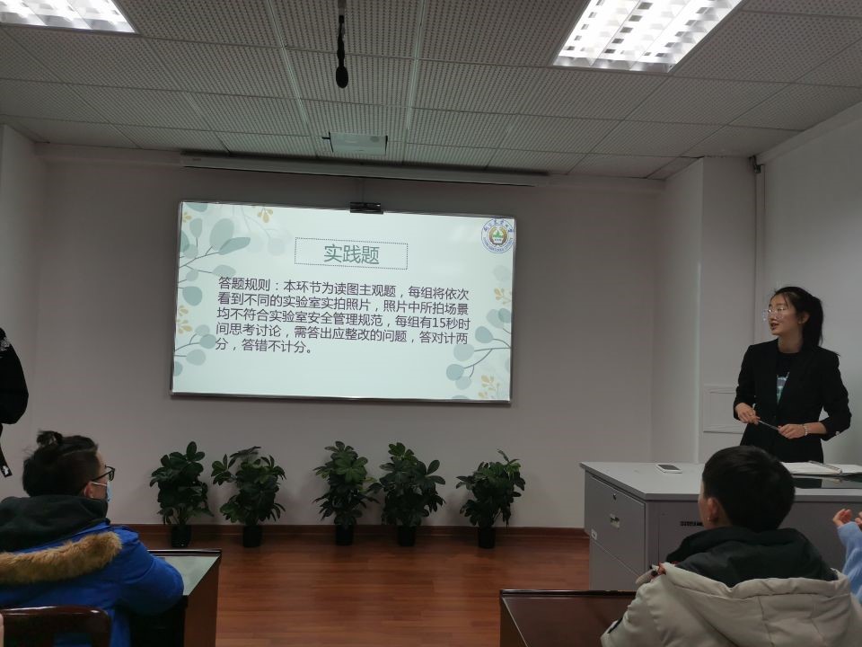 第三轮:实践题,主持人介绍规则后,每组将依次看到不同的实验室实拍照片,需指出照片中不符合实验室安全管理规范的问题。