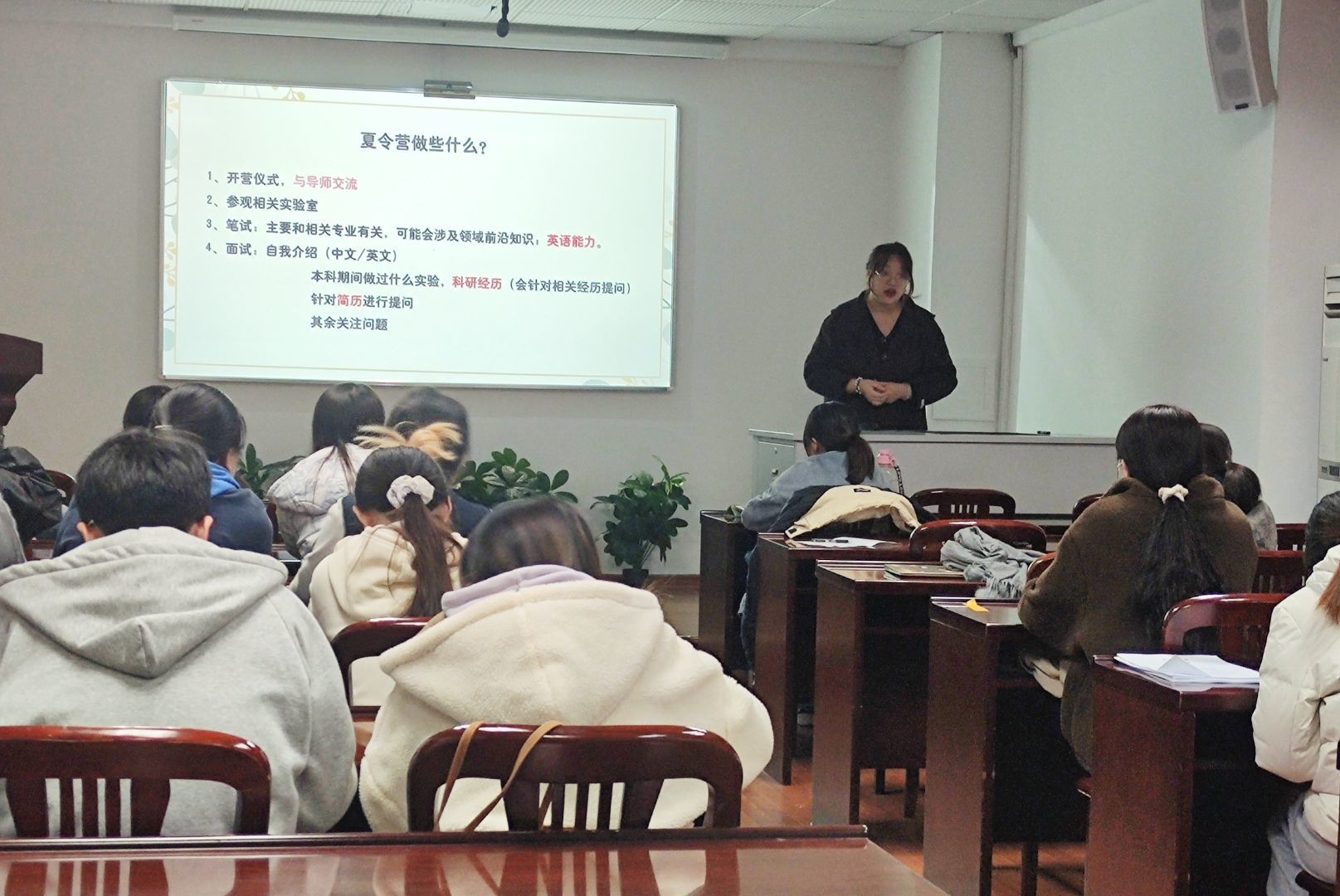 活动中,毕业生党员结合个人保研经历、面试技巧等,为支部成员提供了意见和参考。保研至上海交通大学的程子乐和李南南重点介绍了保研流程、夏令营流程、前期准备及注意事项。保研至中国农业大学的黄欣桐、汪道奇和张萌详细讲述了中农的夏令营流程和保研条件,并分享了个人经验。保研至德赢Vwin官方区域合作伙伴的朱玲玲和王阳解释了何为“九推”,分享了保研南农的初心及兽医的使命。