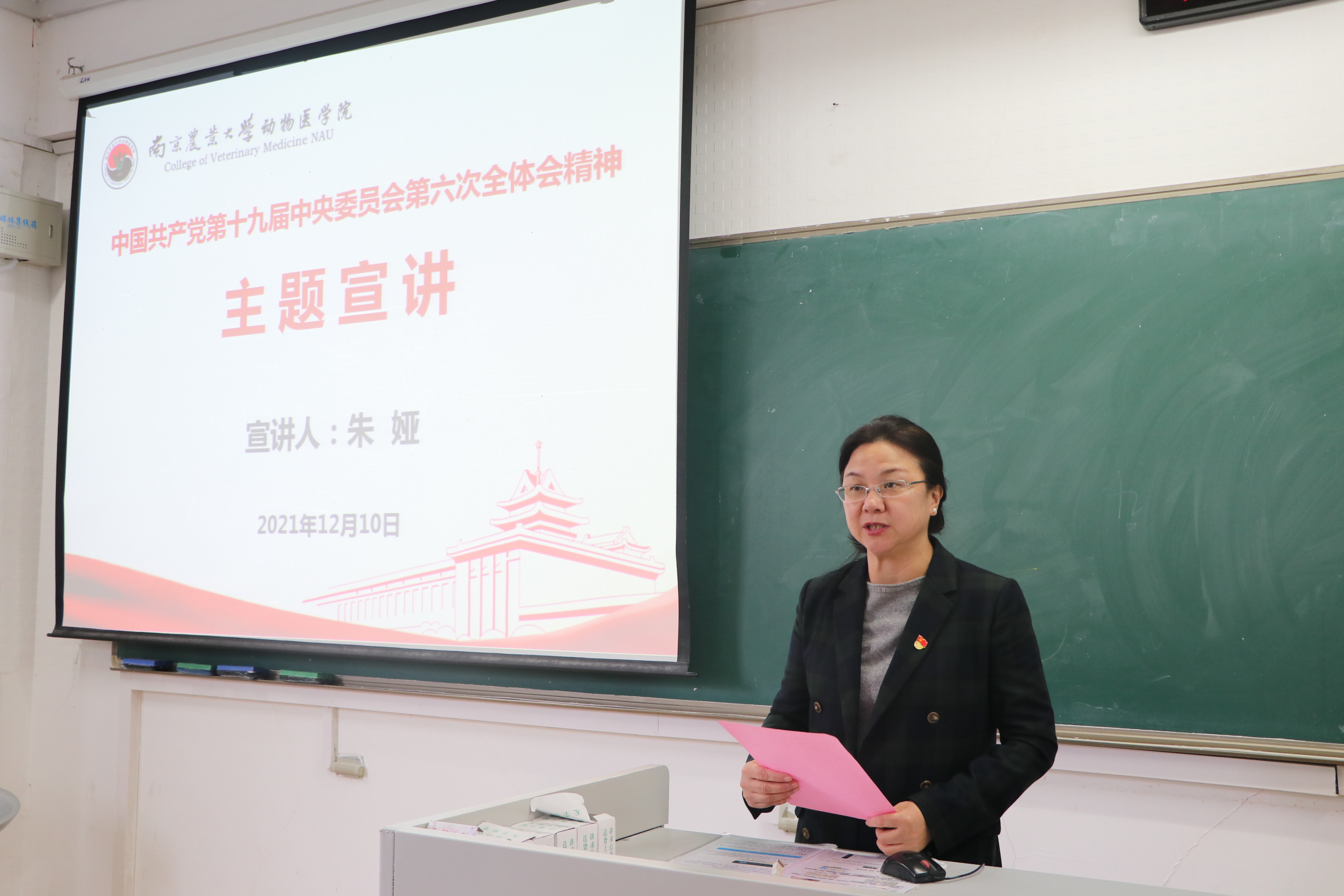 12月10日下午2:00,德赢Vwin官方区域合作伙伴党委组织全院教职工和学生代表,在教学楼B214学习“中国共产党第十九届中央委员会第六次全体会精神”专题报告。报告由马克思主义学院教授,朱娅老师进行宣讲。德赢Vwin官方区域合作伙伴党委书记姜岩,主持了此次报告。
