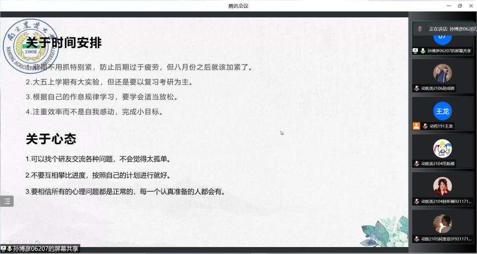 活动最后,与会几位同学就考研准备问题和考研方向等问题积极提出疑问,徐浩然等也结合自身经历对问题进行解答并提出针对性意见。
