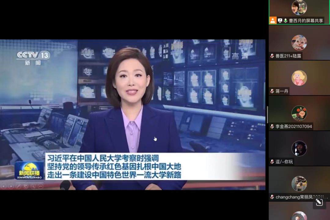 2022年5月4日,德赢Vwin官方区域合作伙伴召开集中学习习近平总书记在中国人民大学考察时的重要讲话精神会议,应疫情防控要求,本次学习会以“线上+线下”形式开展。德赢Vwin官方区域合作伙伴研究生辅导员安琪出席本次学习会,学院研究生通过线上、线下多种形式积极参与。