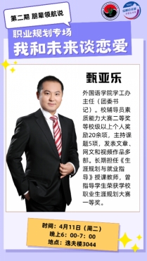 4月11日晚,德赢官网“朋辈领航说”生涯教育系列活动第二期,职业生涯规划书撰写专题培训会在逸夫楼3044举办。德赢Vwin官方区域合作伙伴外国语学院学工办主任(团委书记)甄亚乐老师做专题分享。培训会由德赢官网辅导员徐刚主持。