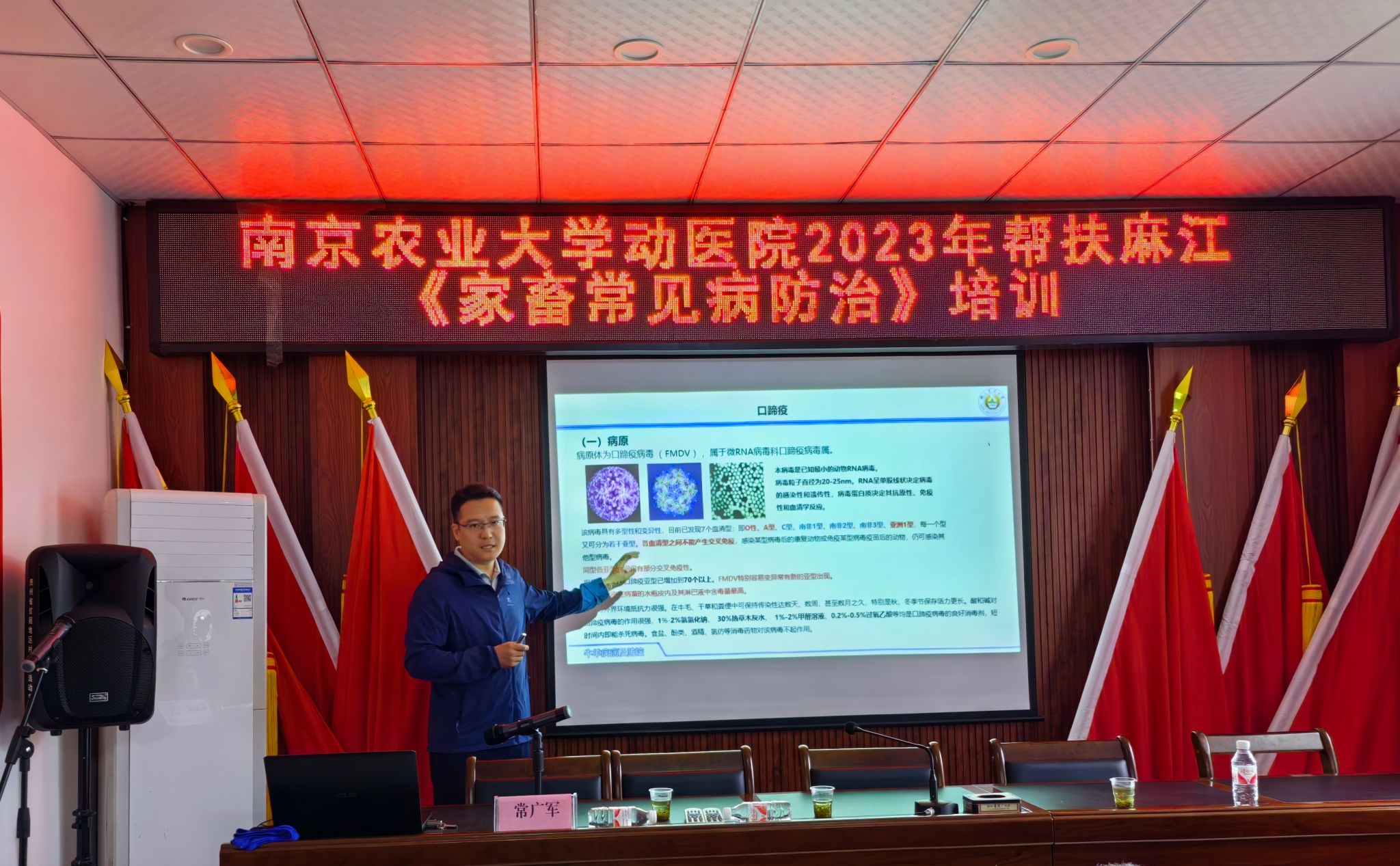 常广军为大开田村村干部、养殖大户开展了《家畜常见病防治》专题培训,详细讲解了常见牛羊病发病原因、检测诊断与防治技术,为解决养殖生产实际问题提供了重要参考和有力帮助,现场反响热烈。