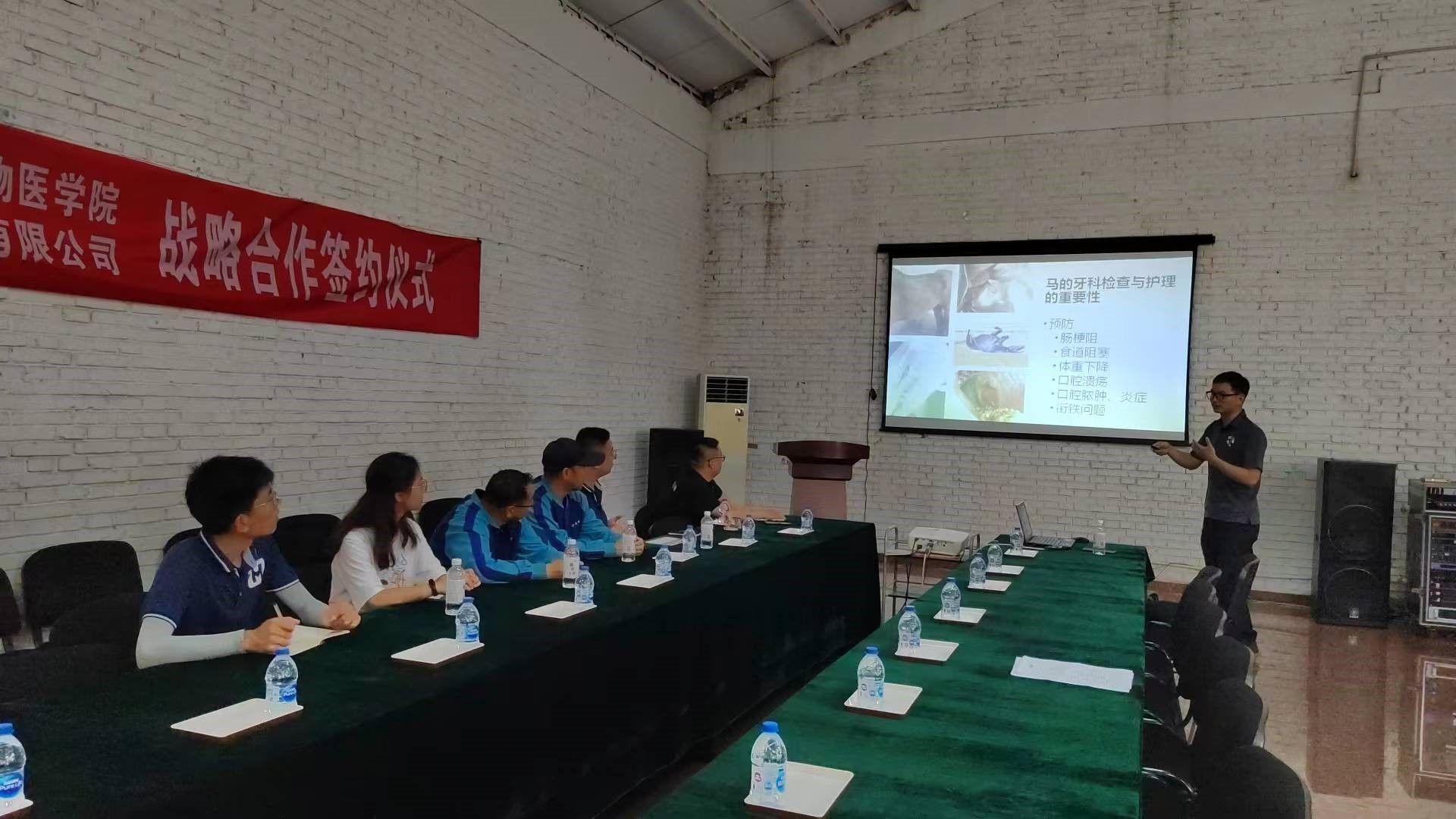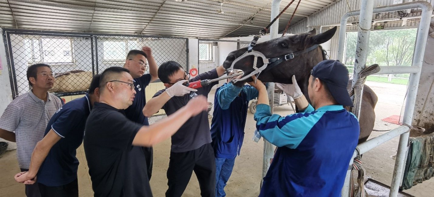 曹瑞兵一行深入调研企业的发展情况和校企合作需求,参观了公司的马匹、马厩、马匹运动场、马医院和实验室等设施。徐庆介绍了公司的发展历程,围绕公司生产过程中遇到的问题和技术需求与学校老师进行了交流。曹瑞兵介绍了德赢Vwin官方区域合作伙伴的办学历史与现状,表达了培养马兽医人才以及校企合作愿望。王炜晗此行与东方马都的兽医团队展开了深入交流,成功开展了马匹牙科检查及护理的理论和实操培训,将先进、实用的诊疗技术推广到兽医临床一线。